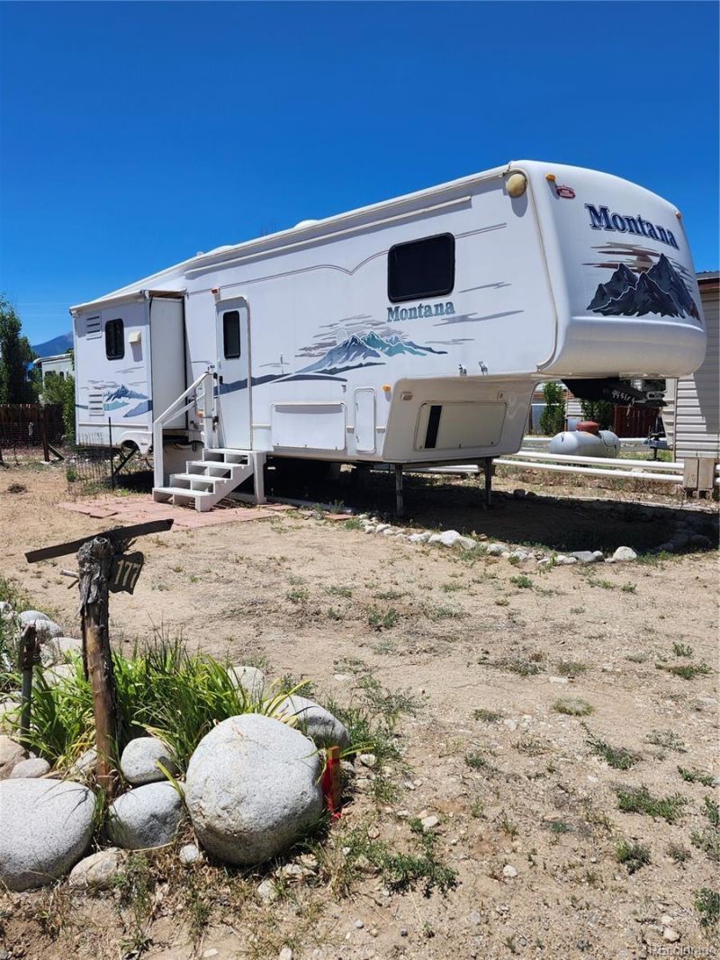 Arkansas river access and Browns Canyon National Monument trails from this affordable year round home base. Own .048 acres in the Chateau Chaparral subdivision. Well maintained 2003 Montana fifth wheel with 3 bump outs for added indoor space. Enter into the open concept living, dining, kitchen area. Built in TV console has hidden desk option, floor to ceiling entryway cabinets; you can never have enough storage. Bump out kitchen has wood floor, wrap around kitchen counter with sunken sinks and wood paneled hidden refrigerator matches upper and lower wood cabinets. Dark (for privacy) to light (for more transparency) magnetic fabric blinds on windows. Bump out living space has lots of seating options. Up two steps from main floor to the bathroom section; shower and vanity sink. Separate toilet closet with skylight and vent. For ultimate privacy in the bump out bedroom extend pull out wall. Bedroom has lots of windows for natural light. Big enough to fit a queen size bed with underneath storage, built in dresser and full length mirrored closet. Extra closet has washer/ dryer hook up capability. Furniture included. Electricity and sewer hooked up, add winter water for all season usage. Buy the adjoining lot 176 and gain more space for gathering or investment option. Live halfway between the towns of Salida and Buena Vista and close to all the town amenities. The Chalet style clubhouse has workout area and game space, coin laundry facilities, commercial kitchen, and community hall, along with outdoor grilling and gathering space with great views. Escape out your back door to fishing, rafting, biking, and hiking or enjoy relaxing at nearby hot springs. This hidden oasis provides the best of all worlds.