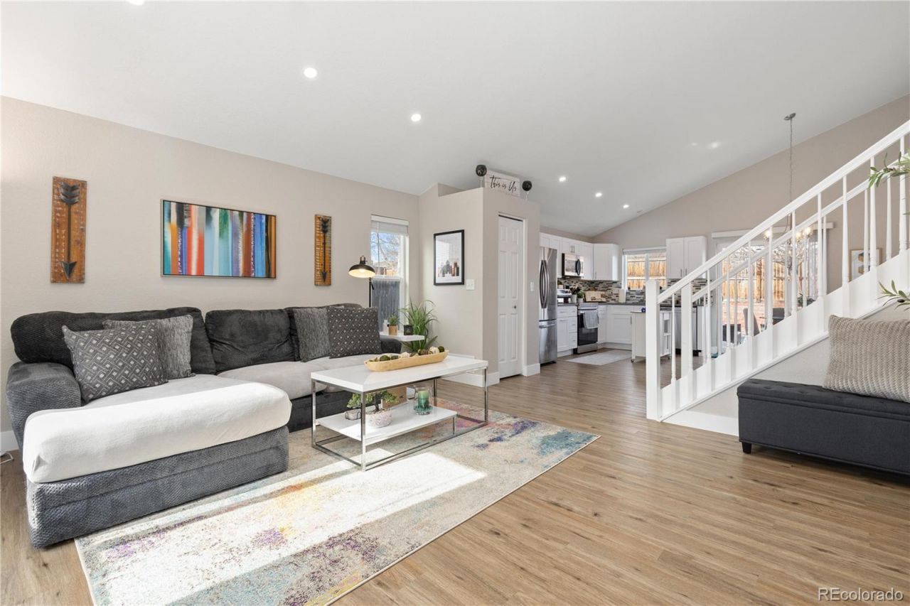 Step inside and youre immediately welcomed by a bright, modern atmosphere that feels both fresh and inviting. Soaring vaulted ceilings and an open floor plan create an airy sense of space, while the clean, neutral color palette enhances the natural light that pours in throughout the day. Luxury vinyl plank flooring anchors the main living areas with both style and durability, and plush carpet adds comfort in the bedrooms and lower-level family room. The kitchen feels crisp and contemporary with quartz countertops, stainless steel appliances, and an easy flow into the dining and living spaces, making everyday living seamless and entertaining effortless. Updated bathrooms, refreshed paint, and modern fixtures throughout give the entire home a polished, move-in-ready finish. Outside, the backyard is the perfect escape with a concrete patio and tidy landscaping, perfect for relaxing or hosting friends. Enjoy the sunshine on the south facing front porch and driveway. The epoxy-coated garage floors, built-in EV charger, and added side driveway parking elevate functionality, while a Class IV roof with new decking and a recently serviced furnace provide added peace of mind. Located on a quiet street with friendly neighbors and no through traffic, and just minutes from the Margaret W. Carpenter Recreation Center, this home blends modern style, brightness, and true pride of ownership into one exceptional opportunity.