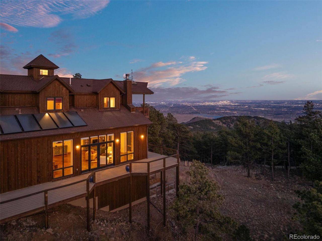 Perched on 35 private acres with true top-of-the-world views, this architecturally re-imagined residence delivers the ultimate wow factor ? a rare blend of serenity, space and glittering city lights views. All conveniently located in a luxury enclave of just 12 homes with surprising quick access 18 paved minutes from Golden. Originally built as a luxury barn and thoughtfully transformed into a modern, light-filled home, the design celebrates openness and airiness at every turn. The dramatic lofted great room seems to float above the landscape, walls of windows framing sunrises, sunsets, city lights and mountain views that feel almost within reach. Radiant in-floor heat keeps things cozy, while a kitchen designed for gathering makes entertaining effortless. The spacious primary suite includes its own kitchenette/office and wonderful balcony - sleep under the stars! A media room, huge garage, and additional detached garage provide flexibility for hobbies, cars, gear, and guests. Step outside and the experience becomes something special. Expansive decks invite unforgettable nights beneath the Milky Way, hot-tub soaks while deer wander past, and evening sunsets with panoramic views. Up the hill behind the home, a graded path leads to a private RV or camping area complete with electric hookup ? your own personal overlook for stargazing nights.The south-facing home and driveway naturally help with snow melt, and you have two garages and plentiful parking and storage. Excellent free internet means working from home is easy? though a quick run to Golden or a nearby café is never far. White Ranch Open Space ? with over 20 miles of trails and Golden Gate State Park? are just 5 minutes away. Horses welcome too and well allows for. It feels like a private mountain sanctuary ? because it is ? yet everyday life remains wonderfully convenient. A rare opportunity to live in your own special paradise! For video, floor plans, 3D tour go to www.27659MistyRoad.com