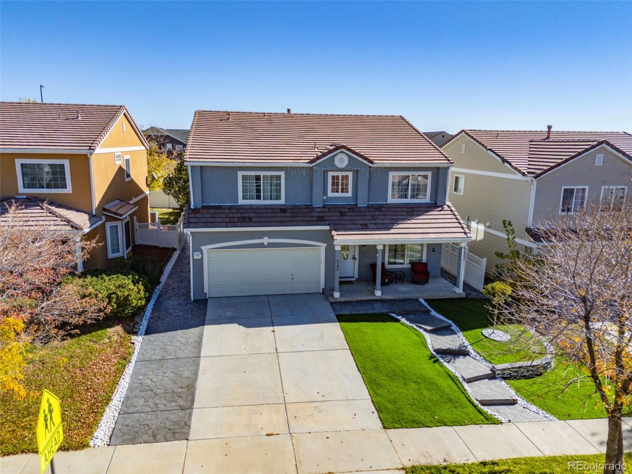 Welcome to this thoughtfully updated home in the heart of Green Valley Ranch, where modern upgrades meet a welcoming community atmosphere. Situated in one of northeast Denvers most established neighborhoods, residents enjoy close proximity to parks, trails, golf, local dining, and convenient access to Denver International Airport and major commuter routes. This spacious home features four bedrooms and a versatile loft that provides additional living or gathering space, along with a dedicated office or flex area on the main level ideal for a variety of needs. The updated kitchen is designed with both style and function in mind, showcasing white quartz countertops, a farmhouse sink, marble flooring, and a generous walk-in pantry. A remodeled secondary bathroom completed in 2024 adds a fresh, contemporary feel. Exterior improvements completed in 2025 include new stucco, professionally installed landscaping, stamped concrete on the back patio sidewalk and front stair, low-maintenance turf that enhances curb appeal and usability, and a newly installed air conditioning system also in 2025 for added comfort and efficiency. The private backyard with a covered patio offers a comfortable outdoor retreat, while the large front porch creates an inviting first impression. A lifetime ceramic tile roof adds long-term durability and peace of mind. Green Valley Ranch is known for its strong sense of community, neighborhood parks, open space, and access to recreation opportunities throughout Denver. This home combines functional living spaces, meaningful upgrades, and a connected location, creating an ideal setting to enjoy the Colorado lifestyle in a well-established and community-oriented neighborhood.