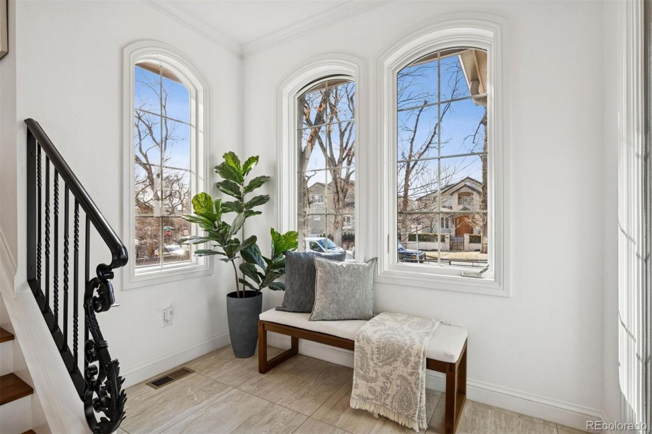 An exceptional expression of contemporary sophistication, this 5 bedroom, 6 bath residence offers elevated living in the heart of Cherry Creek North, just steps from the neighborhoods most coveted dining, shopping, and lifestyle destinations. A rare and highly sought after highlight is the coveted three car garage as well as an elevator that accesses all levels of the home. Designed with enduring craftsmanship and thoughtful detail, the home welcomes with an awe inspiring foyer where a striking staircase, 8 foot solid core doors, and soaring ceilings create a sense of grandeur and refinement. The main level is both functional and inviting, featuring a private office with new wool carpet, as well as expansive living and dining spaces tailored for entertaining. The gourmet kitchen is appointed with quartzite counters, Kohler fixtures, abundant storage, a walk in pantry, and a large eat in island designed for gathering. Culinary enthusiasts will appreciate premium Thermador appliances, including double oven, oversized refrigerator, and six burner gas range, plus two dishwashers. Indoor outdoor living is seamless, with the kitchen and living area opening to a private patio complete with an outdoor fireplace. The second level offers exceptional flexibility with a second primary suite on this level and an additional ensuite bedroom with walk in closet and a gym/office. The crown jewel is the third floor primary suite, a private sanctuary featuring its own fireplace, spa like bath with a heated jetted tub, built in coffee bar and a spectacular rooftop deck, an ideal escape for morning coffee, and Colorado sunsets. The finished lower level extends the homes livability with a spacious media area and an entertaining bar setup, complete with a sink, refrigerator, and dishwasher. With a west facing orientation, the home enjoys beautiful natural light and warm afternoon glow. Both the front and back yards are fully fenced, making it ideal for pets and outdoor enjoyment.