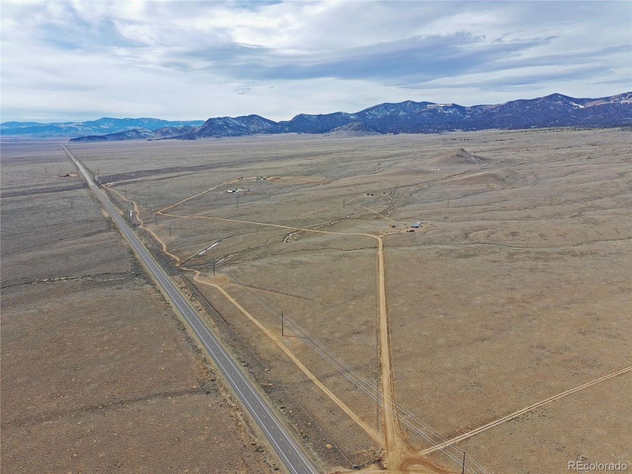 DIRECT ACCESS TO HWY 285 on this rare 35 acre property in the San Luis Valley. Fully fenced with stunning vistas of the Sangre De Cristo Mountains beyond and the San Luis Valley. Endless possibilities of roadside business ventures are possible on this highly visible property, directly on a main thoroughfare through the area. This acreage also allows a domestic well to provide water for up to three houses, and water up to an acre of gardens.