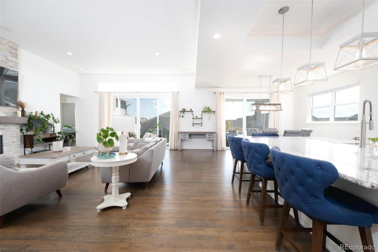 Welcome to 6448 Rolling Creek Drive, a home that blends modern design, thoughtful upgrades, Pikes Peak views, and the best of Colorado living. The kitchen is a true chefs dream, featuring a pot filler, double oven, walk-in pantry, apron-front sink, upgraded herringbone backsplash, countless lighting upgrades, and an oversized island designed for both entertaining and everyday life.The open-concept layout connects seamlessly to the living room, anchored by a beautiful stone fireplace. Additional touches here include a double sliding glass door and a built-in speaker system that add comfort and style. Just off the living room, the primary en suite impresses with an exposed beam ceiling, an oversized walk-in shower with dual shower heads, and a walk-in closet that could rival the size of a bedroom. Also on the main level is an expanded secondary en suite, perfect for guests or multi-generational living. Head downstairs to a spacious finished basement with a custom wet bar, second stone fireplace, a third en suite, and a fourth bedroom. Theres also an unfinished room offering flexibility as a home gym, storage, or the option to finish it out into a fifth bedroom with its own walk-in closet. And while the home itself is incredible, the neighborhood is truly the icing on the cake. Wolf Ranch is an award-winning, master-planned community with over 300 acres of open space, more than seven miles of finished trails, and a lifestyle filled with parks, events, and natural beauty. Take a walk through the 3D tour or schedule a showing today. This home has everything youve been searching for!