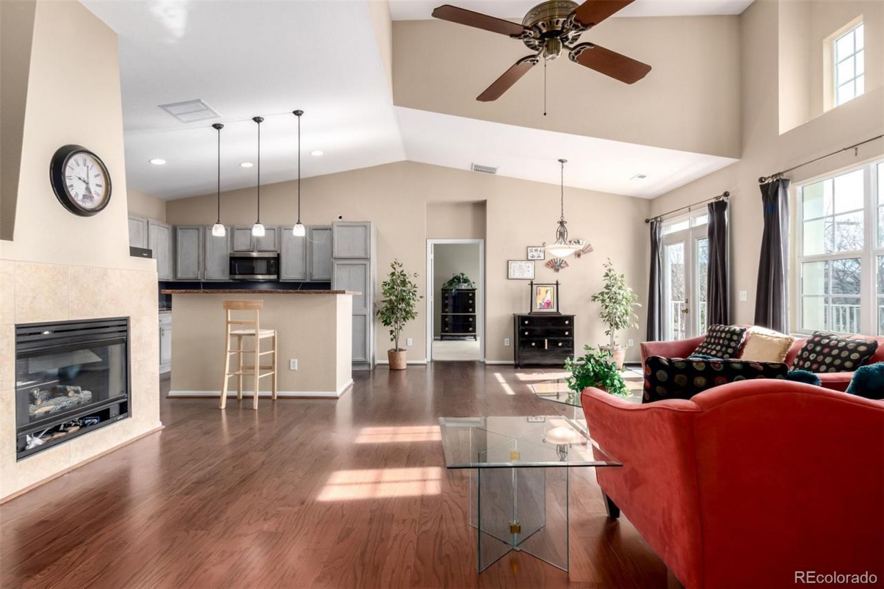 Located in the heart of Denvers Central Park area, this spacious 2-bedroom, 2-bath features plenty of charm and functionality. The open-concept main level features vaulted ceilings, expansive windows, and hardwood flooring, creating a bright, functional living space. A separate office/counter space and built-in library shelving create a charming yet functional work space. The kitchen includes gray cabinetry, tile backsplash, a breakfast bar with pendant lighting, and generous storage. It flows directly into the dining and living areas, anchored by a lovely gas fireplace. French doors open to a spacious private second-floor patio. The primary suite provides substantial square footage with an en-suite bath and walk-in closet. A secondary bedroom and full bath offer flexibility for guests, office use, or shared living. A separate family room completes the main floor while a dedicated laundry room, large storage closet, and oversized tandem 2 car garage offer significant storage space. Come by and see all this ideally located home has to offer. You wont be disappointed!